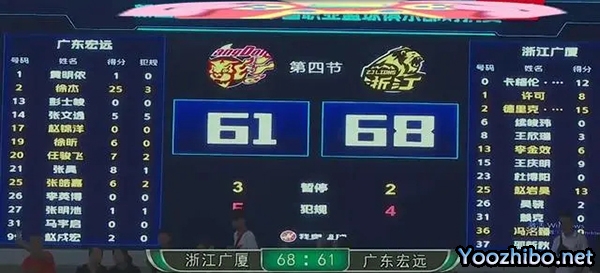 JRS直播网讯 北京时间 9月16日讯 CBA热身赛,广东队61-68不敌广厦队。此役双方前三节你来我往陷入僵持,广东队稳扎稳打始终占优,并带着10分优势进入末节,但末节比赛形势风云突变,广厦单节27-10逆转对手。四节比分分别是(广东在前):19-13、19-17、13-11和27-10。