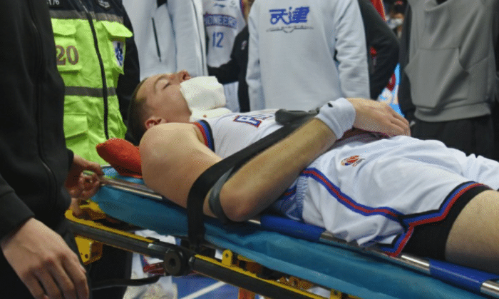 大卫詹姆斯是在第二节,他从后场持球推进,想要一条龙暴扣,结果被身后防守的广厦核心胡金秋犯规,大卫詹姆斯落地时身体失去平衡,头部着地重摔,直接失去意识。张庆鹏直接哭了,天津男篮的球员们也都不敢相信这一切,医护人员用担架紧急送医院。