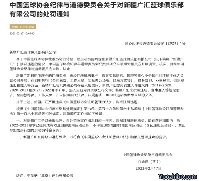 来源:JRS直播网02-17 16:03JRS直播网讯02月17日周琦终于恢复自由身,在和新疆男篮扯皮两年的时间之后,调查结果出炉,新疆男篮严重违反《中国篮球协会注册管理办法》,存在主体混乱和阴阳合同等,限制一年不得注册新球员。新疆不再具备周琦的独家签约资格,这样按照规定,周琦在下个赛季可以自由身加盟任何CBA球队。