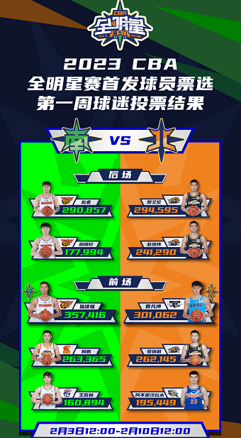 此前CBA官方已经在2月10日公布了一次全明星的球迷票数,接下来还会在17日最后一次公布票数。在第一次公布的票数中,广东男篮的老大哥易建联以357416票,暂时是本届CBA全明星的票王,周鹏、王哲林等人也都进入到南区得票榜前列。北区有些令人意外,因为以往都是辽篮大包大揽,如今第一次征战CBA的北京首钢小将曾凡博以301062票,力压郭艾伦和张镇麟等人,是第一期的北区票王。
