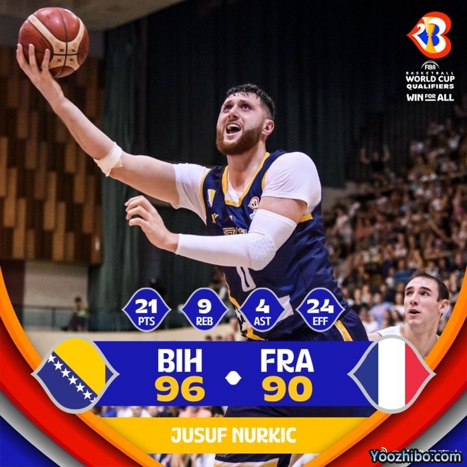 JRS直播网讯:北京时间2022年8月28日,波黑男篮双加时96-90击败法国队,努尔基奇和戈贝尔犯规在法国队的比赛中,波黑首节一度领先18分,法国队领先12分在第三季度。结果,波黑20-0进攻波黑。波黑在第四节一度领先10分,法国队紧追不舍。双方经历了两次加时赛,波黑96-90战胜法国队。