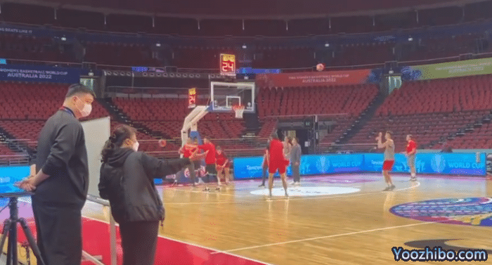 可以看到正在进行适应场地训练的中国女篮球员们抓紧时间备战,她们更多的是在外线投射三分球,李梦底角投射、杨力维弧顶练习三分,每个人都非常努力,希望可以在首战之前调整到最好的状态。
