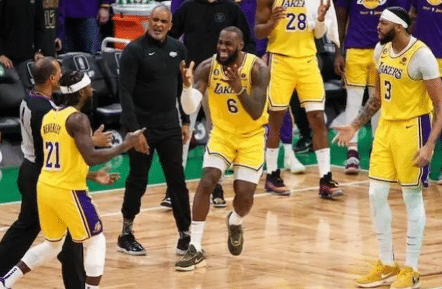 在2022-23赛季常规赛,湖人客场惜败凯尔特人,关键时刻詹姆斯绝杀球明显被塔图姆打手,可裁判居然没有任何吹罚,刘易斯就是本场比赛的主裁;当时詹姆斯十分生气,情绪崩溃双膝跪地不起,贝弗利拿着相机给刘易斯看,反倒吃到一次技术犯规。