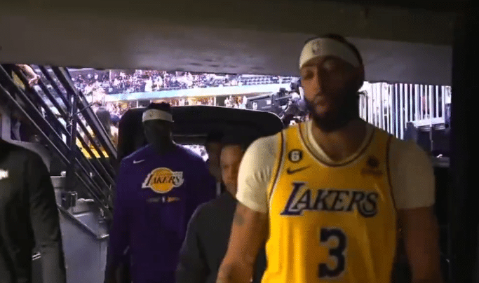浓眉哥回到更衣室,期间脸色铁青,他还遭到了掘金球迷的挑衅,好在身旁有工作人员。