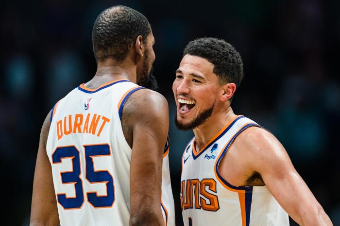 杜兰特热身时不幸崴脚退出比赛,布克延续火热状态,仅仅出战27分钟,23投17中高效轰下44分钟,提前打卡下班;太阳主场31分大胜雷霆喜提四连胜,37胜29负仍排在西部第4位,不过太阳仅仅落后西部第二的国王2个胜场,太阳强势冲击西部第2。