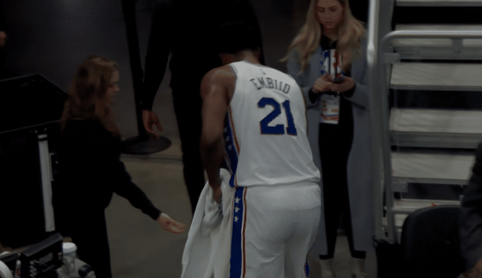 恩比德第一节7投4中贡献9分,第二节4中1仅3分,受到膝伤的困扰,第二节一度返回更衣室,坐在替补席接受治疗,上半场还剩1分多钟,恩比德下场时有些一瘸一拐;由于受到伤病的困扰,恩比德上半场11投5中拿到12分4助攻3篮板,进攻端惨遭大洛封盖,防守端防不住大洛,后者半场8投5中高效贡献13分。