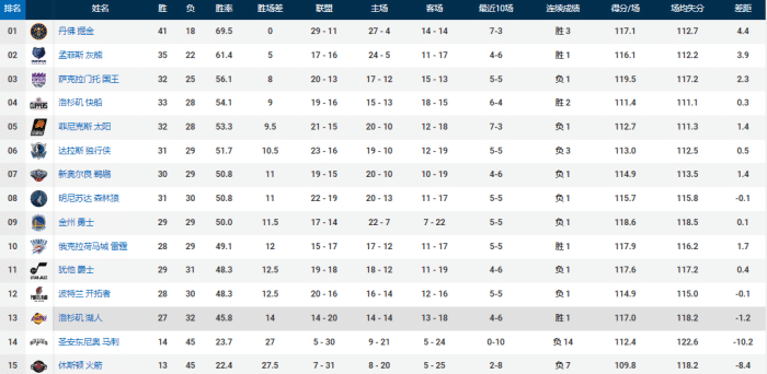来源:JRS直播网02-23 15:11JRS直播网讯02月23日讯 NBA全明星结束之后,各队休战数天,一直到2月24日才有比赛,常规赛重燃战火,也进入到最后的冲刺阶段。西部的看点十足,目前除了第一的掘金和第二的灰熊之外,各队的位置都不稳固,排名西部第13的湖人都有机会进入到附加赛,甚至主帅哈姆在接受采访的时候表示球队的目标是西部前六,这样就可以避免参加残酷的附加赛。