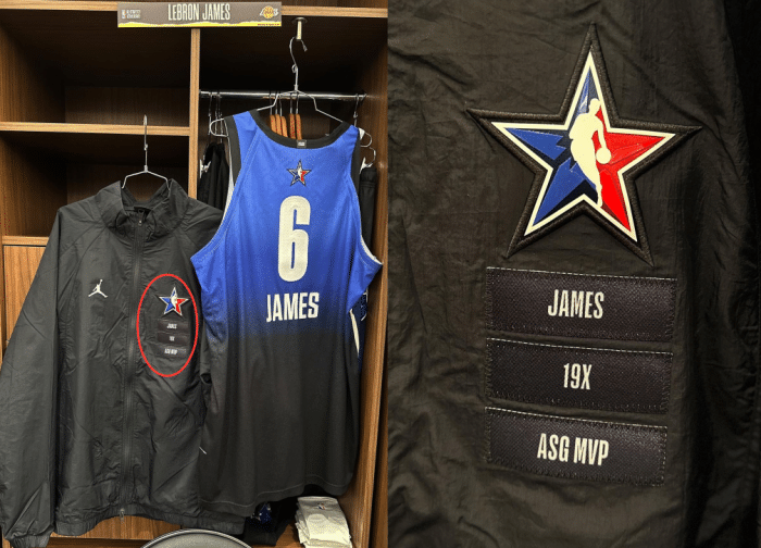 詹姆斯双手抱球坐在C位,满脸笑容,凸显队长和全明星票王的身份,詹姆斯左右两侧坐着欧文和莫兰特,坐在第一排的球星还有利拉德、福克斯;东契奇、约基奇、小贾伦-杰克逊、爱德华兹、马尔卡宁、小萨博尼斯和亚历山大都站在后排。