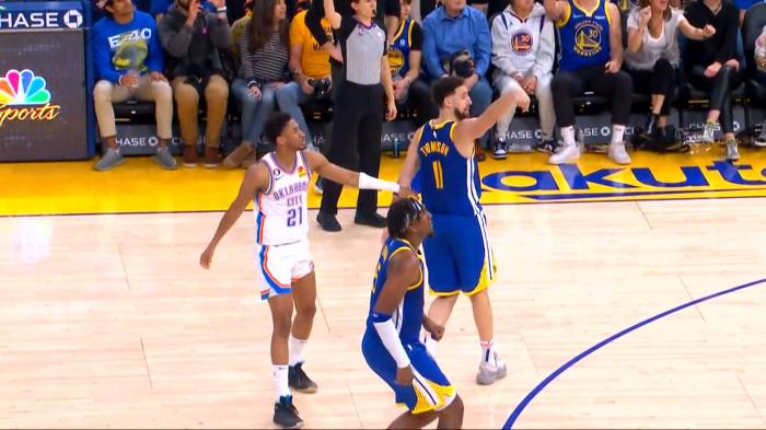 来源:JRS直播网02-07 14:40JRS直播网讯讯02月07日,NBA常规赛勇士141-114大胜雷霆,库里因伤缺席比赛,汤普森迎来爆发,全场22投15中、三分16中12轰下42分,轰进极限压哨三分点燃球馆,一战狂刷多项纪录;普尔顶替库里首发出战,14投8中拿到21分12助攻同样表现出色,第三节13分5助攻助勇士早早奠定胜局,也破纪录