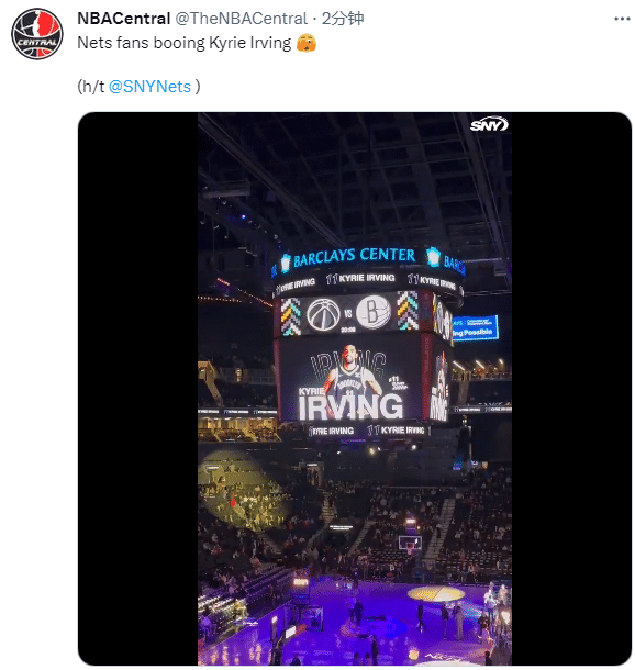 来源:JRS直播网02-05 18:04JRS直播网讯02月05日讯 ,欧文申请离队引热议,今天主场对阵奇才,欧文因小腿酸痛缺席比赛,赛前篮网在主场大屏幕上介绍欧文时,巴克莱中心球馆的篮网球迷狂嘘他。