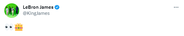 来源:JRS直播网02-04 16:23JRS直播网讯02月04日讯 ,距离交易截止日还剩6天,湖人酝酿大交易,与爵士谈判关于威少的交易;还将与篮网谈判关于欧文的交易;欧文申请离队后,詹姆斯疑似发声回应,晒王冠+眼睛表情,言外之意就是国王看到了。