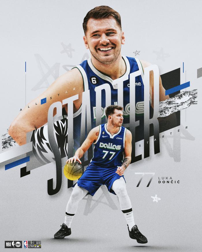 东契奇生涯第4次入选,本赛季场均轰下33.8分9.1篮板8.6助攻以及1.5次抢断,场均得分位居联盟第一。