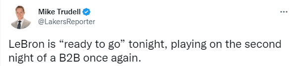 今日背靠背对阵马刺,詹姆斯已经准备好出战马刺了,目前詹姆斯总得分已经达到38210分,距离超越贾巴尔(38387分)仅仅只差178分,继续追逐历史得分王;本赛季湖人已经3次击败马刺,去年11月底客场背靠背对阵马刺,詹姆斯都打了。