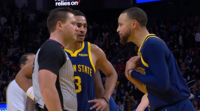 末节还剩1分16秒,库里伸手向普尔要球,普尔没给并且超远三分打铁,之后库里心情沮丧,气得怒摔牙套,把牙套扔进观众席,见状裁判直接把库里驱逐离场,库里找裁判理论仍无济于事,一脸委屈和无奈;库里全场出战34分钟,19投10中、三分8中4拿到34分3助攻2篮板2抢断以及3失误,第一节早早两犯打得很少。