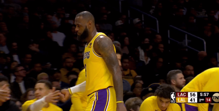 湖人半场落后快船23分:詹姆斯18+6一脸沮丧 小卡罕见露出笑容