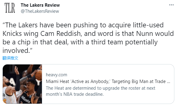 湖人想要引援雷迪什,雄鹿和独行侠也有意他,现在尼克斯对雷迪什的要价降为一个次轮签;美媒表示纳恩将成为湖人引援雷迪什这笔交易的筹码,也可能会有第三支球队参与其中。