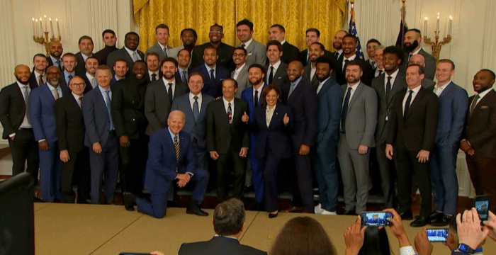 揭秘勇士造访白宫:全员合影总统单膝跪地 库里获特殊待遇希望再夺冠
