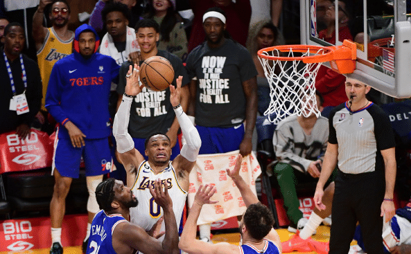 这场比赛湖人输球是非常遗憾的,比赛最后时刻他们一度处于领先,但可惜没有把握住机会,被尼昂和恩比德连续得分,布朗的三分球命中以及哈登的出手不中让湖人看到希望。最后时刻,湖人不叫暂停,直接进攻, 结果就是威少的绝杀上篮没有命中。詹姆斯也被拍到赛后气愤的离开球队,他又一次遭遇了“里程悲”。