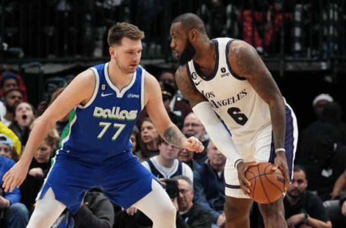 东契奇32+9+9连刷纪录:赛后拥抱詹姆斯 两人热聊有说有笑