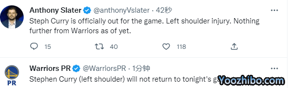 库里因伤提前退赛:勇士官宣左肩受伤 领袖伤退格林两T惨遭驱逐