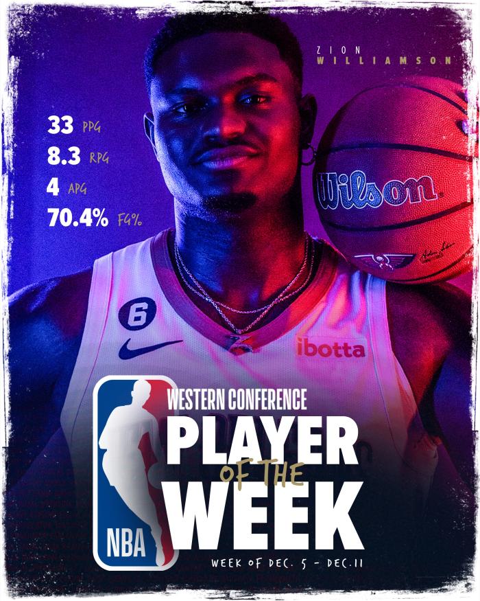 来源:JRS直播网12-13 15:59JRS直播网讯12月13日,NBA官方正式公布最新一期东西部周最佳球员,恩比德场均40+10当选,生涯第9次获奖;锡安场均33+8生涯首次夺得周最佳。