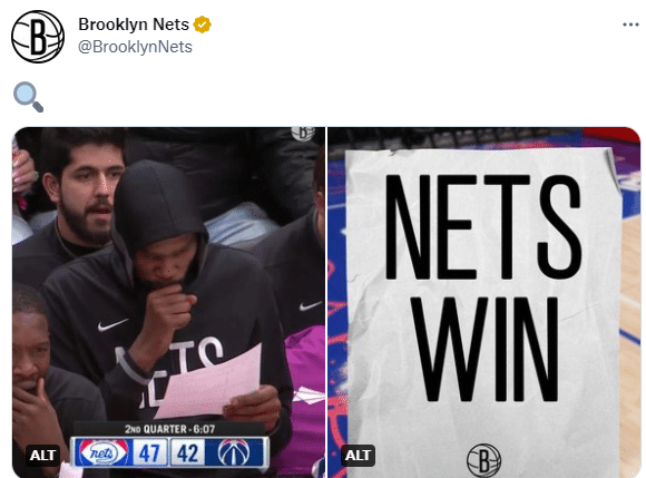 末节,篮网牢牢掌控局面,杜兰特上场后仅出手1次,杀到禁区暴扣再次拿到30+,最终篮网112-100大胜奇才延续连胜;赛后篮网官推调侃杜兰特坐替补席看数据统计,放大一看,上面写着“篮网胜利”。
