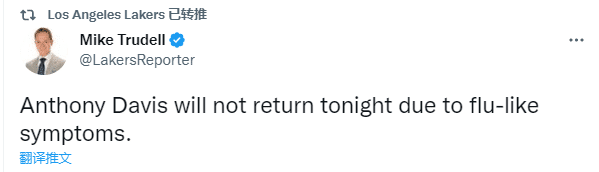 现场TNT记者Jared Greenberg报道,与球队关系密切的人士透露,浓眉在今天早些时候就感觉不舒服,他本想坚持打完比赛;最终浓眉带病坚持打了8分钟就无奈地退出比赛。