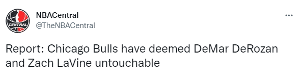 Ric Bucher表示,公牛和热火的战绩不佳,但他们并不打算交易核心球星,联盟消息人士表示,热火球星巴特勒和阿德巴约、公牛球星德罗赞和拉文都是不可触碰的球星,拥有巨额合同的角色球员,比如热火邓罗,公牛郎佐-鲍尔和武切维奇也是不可触碰的。