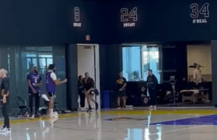 在湖人训练赛后,360组合再次比拼三分球,浓眉、詹姆斯和威少第一次出手都命中;第二投浓眉和詹姆斯打铁后,威少以为自己赢定了,三分还没进就撒腿就跑提前庆祝胜利,结果威少也打铁,空欢喜一场又跑回来;第三投浓眉依旧打铁,詹姆斯命中,威少又打铁,最终老詹赢了。