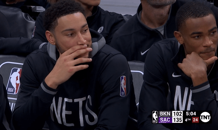 杜兰特提前一节投降:篮网耻辱惨败 KD表情沮丧西蒙斯却露出笑容