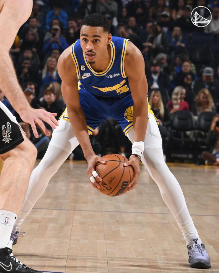 第二节,普尔继续带队,强硬突破再次得分,库里站在场边扭动身体;普尔下场后库里带队,库里三分继续打铁,但穆迪、维金斯输送三分火力;库里虚晃突破上篮终于再次得分,普尔回来后外线一击即中,领先17分后勇士突然哑火,普尔甚至投出三不沾,马刺趁机6-0缩小分差,之后库里连得5分稳住局面,半场打完,勇士61-45领先马刺16分。