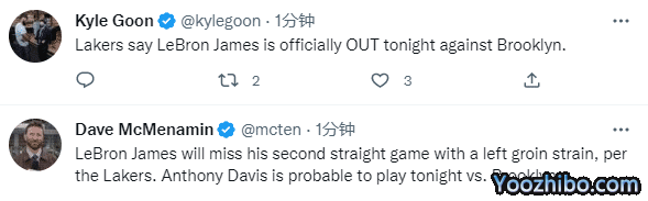 在此前湖人和快船比赛中,末节詹姆斯不幸受伤离场并且提前退出比赛,赛后确诊为左内收肌拉伤;老詹本人表示伤势不严重,不过詹姆斯仍旧需要好好养伤,因伤连续缺席2场比赛,今日缺战篮网无缘大战杜兰特。