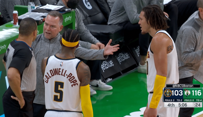 争议:掘金新星垫脚塔图姆一级恶犯 戈登撞人恶犯马龙找裁判理论