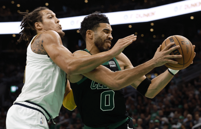本场比赛,约基奇空砍29分8篮板,戈登拿到17分8篮板;凯尔特人全队6人得分上双,塔图姆34分8篮板5助攻,杰伦-布朗25分8篮板8助攻,霍福德贡献21分7篮板。