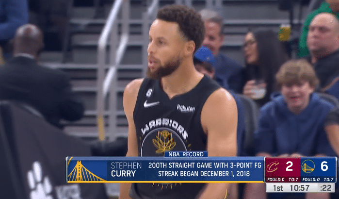 来源:JRS直播网11-12 16:07JRS直播网讯11月12日,骑勇大战又来了,勇士主场大战骑士,库里又迎来里程碑,连续200场投进三分再创历史第一神迹。