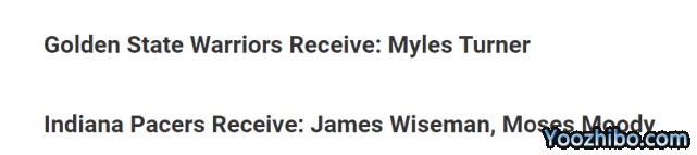 具体内容:勇士送出怀斯曼和穆迪,得到步行者的特纳