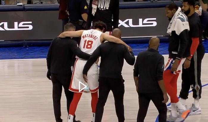 纽约德比,篮网宣布下一场对阵尼克斯的伤情报告,欧文(禁赛)TJ-沃伦(左脚伤病管理)和渡边雄太(左脚踝扭伤)都缺席比赛,渡边雄太是在上一场对阵独行侠比赛中受伤的,被搀扶离场,暂时没有他的复出时间表。