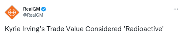 据美记比尔-西蒙斯爆料:我确定篮网在几周前就试图交易他(欧文),我想他可能也知道这件事。我认为这在NBA联盟是众所周知的事情,但没有球队愿意要他。