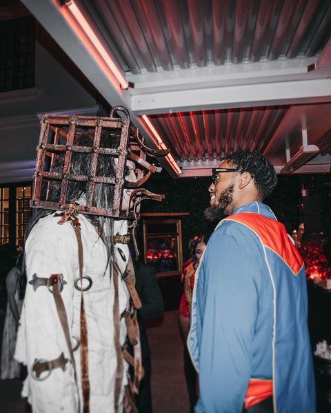 湖人取得赛季首胜后迎来为期3天没有比赛的日子,刚好遇到万圣节,浓眉为湖人队举办了一场万圣节派对;浓眉张牙舞爪的造型十分吓人,也是现场最抢眼的造型之一。