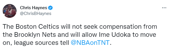 今年休赛期,乌度卡因违纪出轨事件被球队禁赛一年,未来重新执教绿军的可能性也不太大,现在乌度卡有望很快重返篮网执教;据报道,凯尔特人方面从未打算阻止乌度卡接受来自其他球队的执教邀约,而且名记海耶斯透露,凯尔特人不会向篮网要求获得补偿,并且允许他离队。