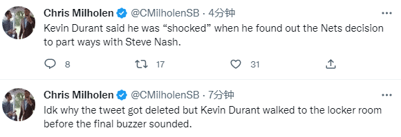 赛后杜兰特正式回应纳什下课,直言他对篮网与纳什分道扬镳感到很震惊:今天中午我小睡了一会儿,当我醒来打开ESPN后,我才知道纳什下课了。