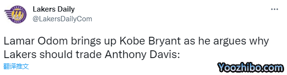 前湖人球员奥多姆在节目中表示:我认为他们必须进行一些交易才能真正改变局面,我认为他们需要做一个可能大多数人都不会同意的交易;我认为他们必须交易安东尼-戴维斯。