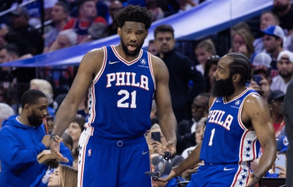 恩比德首节2投1中拿到4分,哈登6投2中拿到5分4篮板3助攻。