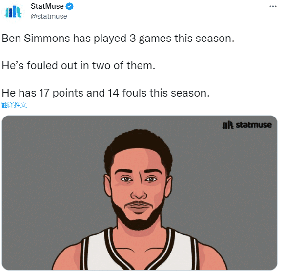 篮网生涯至今,西蒙斯为篮网打了三场比赛,两次六犯毕业,三场比赛总共拿到17分却犯规14次;篮网进攻端有杜兰特、欧文、米尔斯等人,希望西蒙斯能在防守端和组织进攻方面展现自己的价值,可本西的犯规太多了。