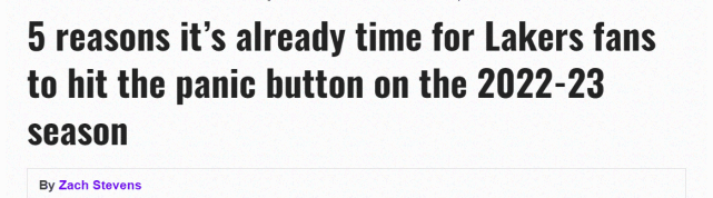 来源:JRS直播网10-23 21:53JRS直播网讯10月23日,2022-23赛季刚开始,湖人遭遇两连败,暂列西部倒数第一。美媒Lakers Daily悲观地认为湖人这个赛季又没戏了,并列出了五条理由——