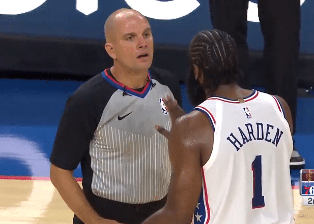 这球不是2+1?哈登一顿操作晃倒对手太狠 不满判罚找裁判理论