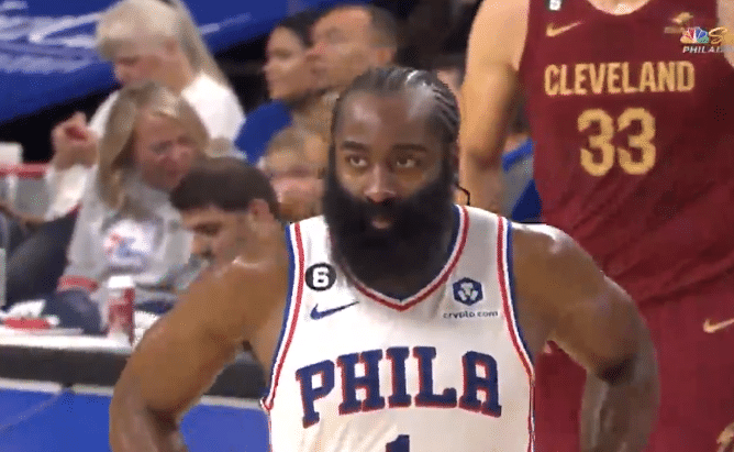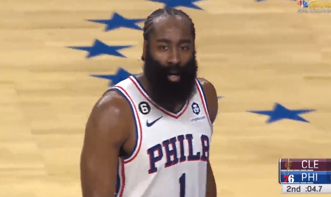 第二节,哈登先是带着替补阵容打,外线命中三分打进本场个人第一球,之后76人主力回来,哈登遭米切尔犯规两罚全中,后者不满吹罚和哈登交流;哈登持球反击一条龙轻松上篮,上半场最后时刻,哈登持球单挑迪恩-韦德,一顿风骚操作晃倒韦德,被撞到仍把球打进,哈登不满裁判没有吹罚2+1,之后哈登拉人犯规赔上一罚一掷,然后哈登找裁判理论。
