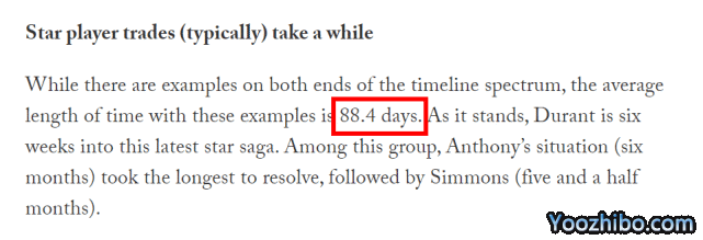 杜兰特申请交易多久能达成?10大球星经历回顾:平均耗时88.4天