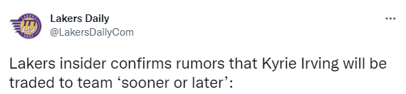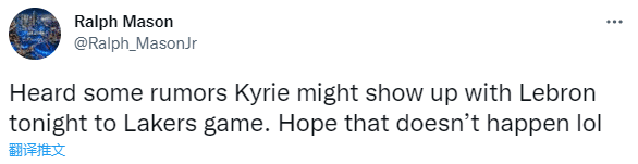 Ralph Mason更是爆料:听说欧文将会和詹姆斯一起观看湖人今天的比赛。