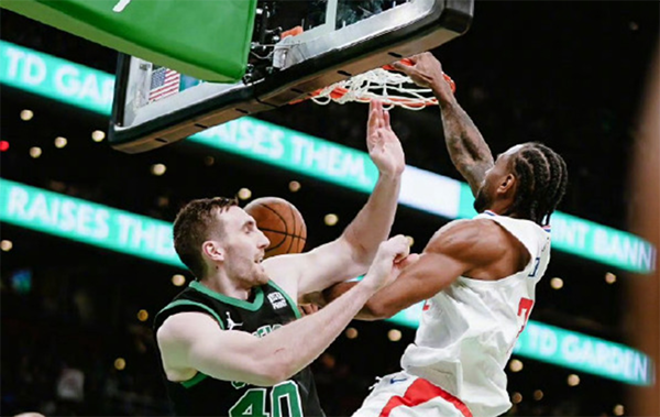 来源:JRS直播网01-28 15:33JRS直播网讯1月28日讯 NBA常规赛结束一场东西部强强对决,快船大胜战绩联盟第一的凯尔特人,豪取5连胜,同时也终结了绿衫军的3连胜。这场比赛的转折点在第三节,快船在6分钟的时间内打出一波21-0,直接将分差拉大,末节领先30分以上,直接沦为垃圾时间。此役莱昂纳德三节26分7篮板2助攻2抢断2盖帽,表现全面而出色。